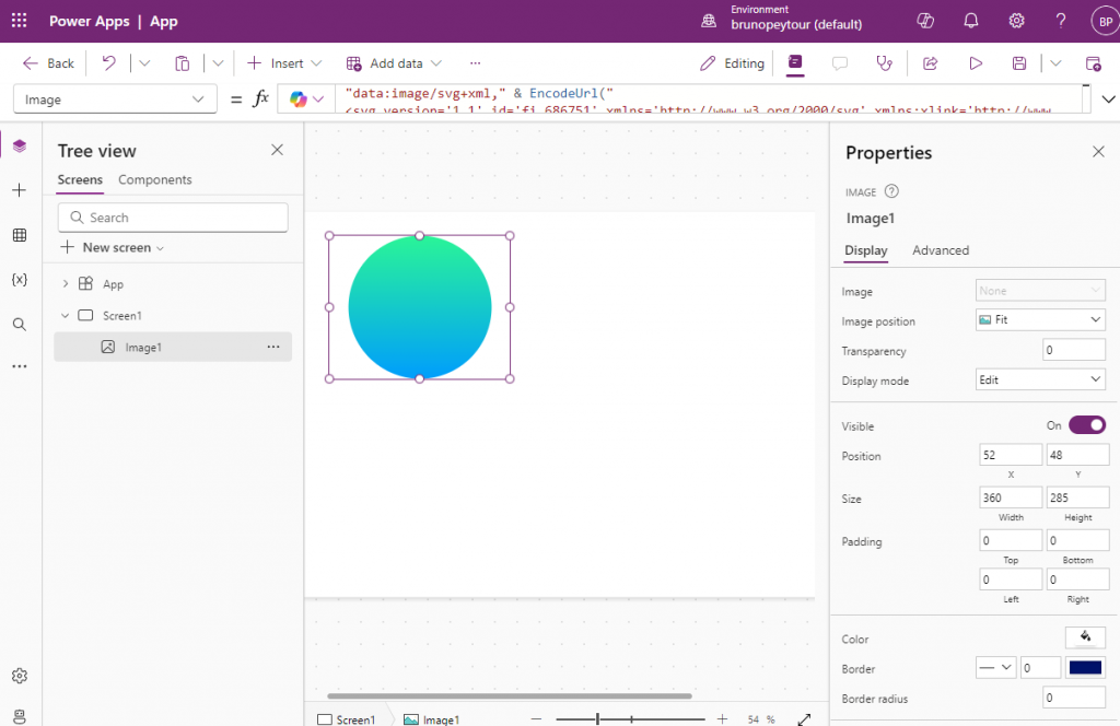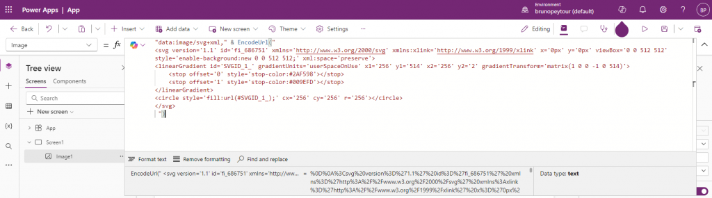 4. In PowerApps Stuido insert a image (Insert > Media > Image)