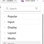 1. In PowerApps Studio, add an image control (Insert > Media > Image).