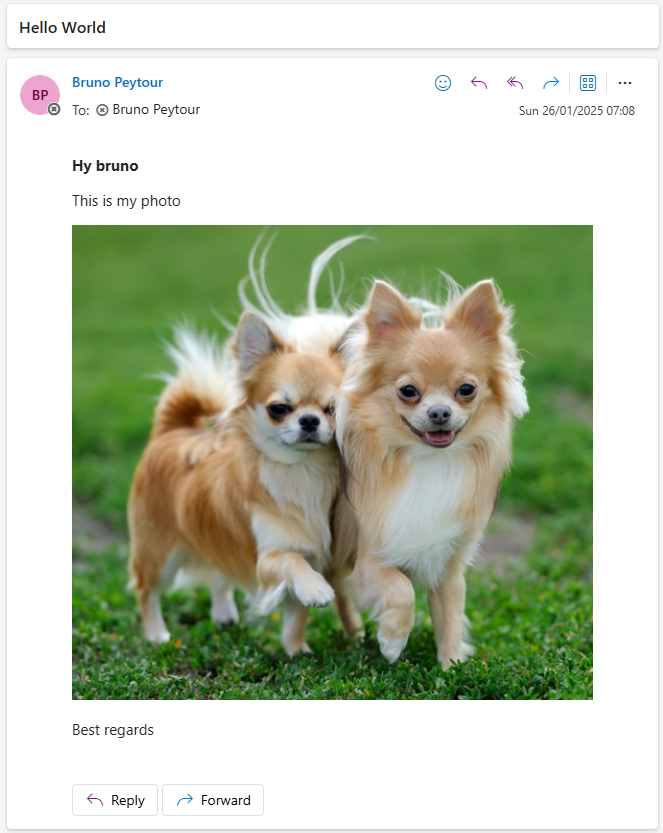 To send an image directly included in the Mail (forcing the image to be displayed) without the risk of Outlook blocking it, you need to include a Base64 encoded image in Html Code