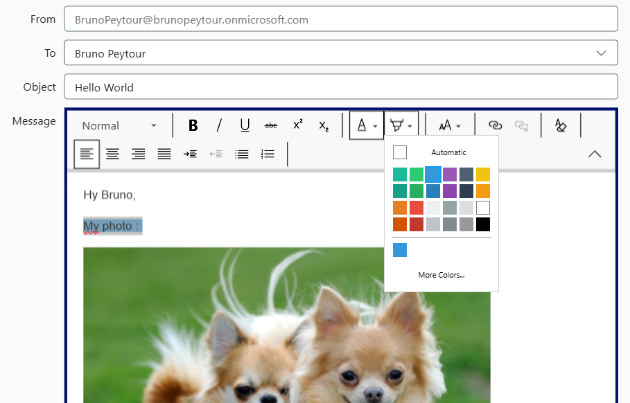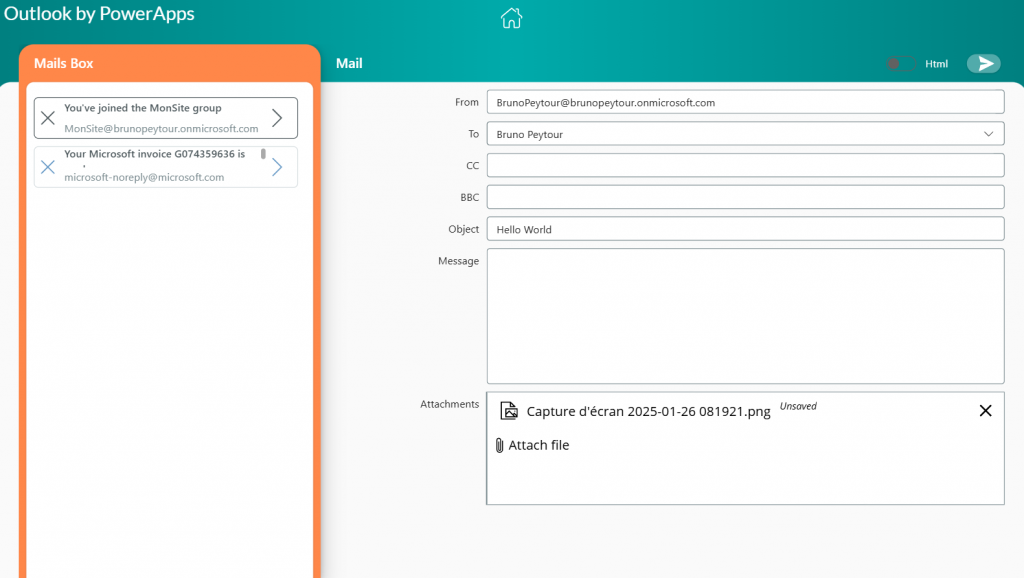 3. Compose your message in PowerApps Page and Click Send Button. You could also paste a image in Rich Text Editor